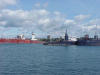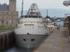 Soo Locks Sept. 2001 Photos: Buckeye - The first ship of the day when I arrived at Mission Point Courtney Burton, Saginaw & Daviken - Upbound below Mission Point Courtney Burton - Upbound at Mission Point Saginaw & Daviken - Looking down river at Rotary Park (Mission Point) Daviken - Upbound at Mission Point Daviken & Sugar Islander II - Upbound Daviken passes ahead of the ferry Vlieborg & Daviken - The Vlieborg leaves the MacArthur Lock while the Daviken awaits the Poe with the tanker Algonova in the background Saginaw - Entering the MacArthur Lock - Algonova in background Saginaw has been raised 21- feet and is ready to depart, headed for Lake Superior Saginaw - A view from outside the fence at the Soo Locks at ground level Saginaw & Le Levant - The upbound Saginaw passes the French Cruise Ship above the Soo Locks Daviken & Mesabi Miner - Meanwhile, the upbound Daviken sets to pass the downbound 1004-footer Le Levant - The French Cruise Ship at West Pier above the Soo Locks Saginaw & Mesabi Miner - The upbound Saginaw is next to pass the Mesabi Miner Canadian Venture, Saginaw & Mesabi Miner - From left to right Mesabi Miner - The 1004-foot-long ship downbound at West Pier Canadian Venture - downbound at West Pier with a beautiful sunset as a backdrop Dobrush - The saltie upbound in the lower St. Marys River Rubin Lark - Downbound in the Lower St. Marys River as evening falls Soo Canada & Algoma Steel Mill - A city and Industry at work George A. Stinson - The 1004-foot-long Stinson downbound with the International Bridge in the background Sarah Spencer/Jane Ann IV - The tug/barge downbound in the Poe Lock Chief Shingwauk - Lock Tours Canada tour boat with Canadian Soo in the background Sarah Spencer & Great Lakes Trader - The two tug/barge units meet each other in the Lower St. Marys River Joyce L. VanEnkevort & Jane Ann IV - The 2 tugs of the tug/ barge units - Joyce L. VanEnkevort pushing the Great Lakes Trader and the Jane Ann IV pushing the Sarah Spencer meet in the lower St. Marys River Great Lakes Trader - Passing salmon fishermen in the lower St. Marys River John G. Munson - Downbound above West Pier in the Upper St. Marys River Lee A. Tregurtha & Great Lakes Trader - The Lee A. Tregurtha (foreground) passes the upbound Great Lakes Trader Ojibway & John G. Munson - The US Steel supply boat, Ojibway, loads fresh supplies on board the freighter Ojibway - Close-up of the Supply Boat loading supplies on board the freighter John G. Munson - A youngster pauses fishing to check out the freighter near Mission Point Canadian Navigator - upbound in Lower St. Marys River Lee A. Tregurtha - Downbound at Mission Point Lee A. Tregurtha - Began her career as a WWII oil tanker before being converted for Great Lakes use. Here she shows off her battle ribbons from WWII. Algosteel & Lee A. Tregurtha - The upbound Algosteel (foreground) passes the Lee A. Tregurtha below Mission Point Algosteel - Upbound at Mission Point Two Seagulls - Staking out their territory at Rotary Park, while a third stands guard Cason J. Callaway nearing Mission Point Cason J. Callaway & Sugar Islander II - The freighter passes ahead of the ferry Catherine Desgagnes - The bulk freighter downbound at Mission Point with a load of grain Catherine Desgagnes & Mapleglen - The downbound Catherine Desgagnes meets the upbound Mapleglen below Mission Point Mapleglen - near Mission Point headed for Lake Superior and a load of grain Indiana Harbor - The 1000-foot-long Indiana Harbor downbound at Mission Point Indiana Harbor - Heading downbound past Mission Point Soo Park barricade - A grim reminder of what happened on Sept. 11, 2001...increased security at the Soo Locks Frontenac The freighter appears out of the early morning mist Frontenac - Early morning fishermen watch as the freighter eerily slides past Frontenac - Another look at the bow of the freighter in the mist Frontenac - Leaving the mist and preparing to enter a clear Poe Lock Edwin H. Gott - The 1004-foot-long freighter preparing to enter the Poe Lock Edwin H. Gott - Just about in the Poe Lock James R. Barker - The 1004-foot-long James R. Barker upbound at Mission Point Ojibway & James R. Barker - The supply boat brings supplies to the upbound James A. Barker |