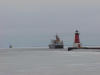 Gordon C. Leitch - The hatch crane rests over a pile of hatch covers on November 26, 2000 Gordon C. Leitch - A crane on the William H. Donner lets loose a load of pig iron from the Leitch on November 26, 2000 Lights of an unknown ship off the Menominee lighthouse on November 26, 2000 USCG Mobile Bay - The Coast Guard Ice-breaker breaks a path into the Menominee River on March 26, 2001 USCG Mobile Bay & USCG Maple - The US Coast Guard boat, Maple, which was built at Marinette Marine Corp. follows the Mobile Bay out into the bay of Green Bay on March 26, 2001
